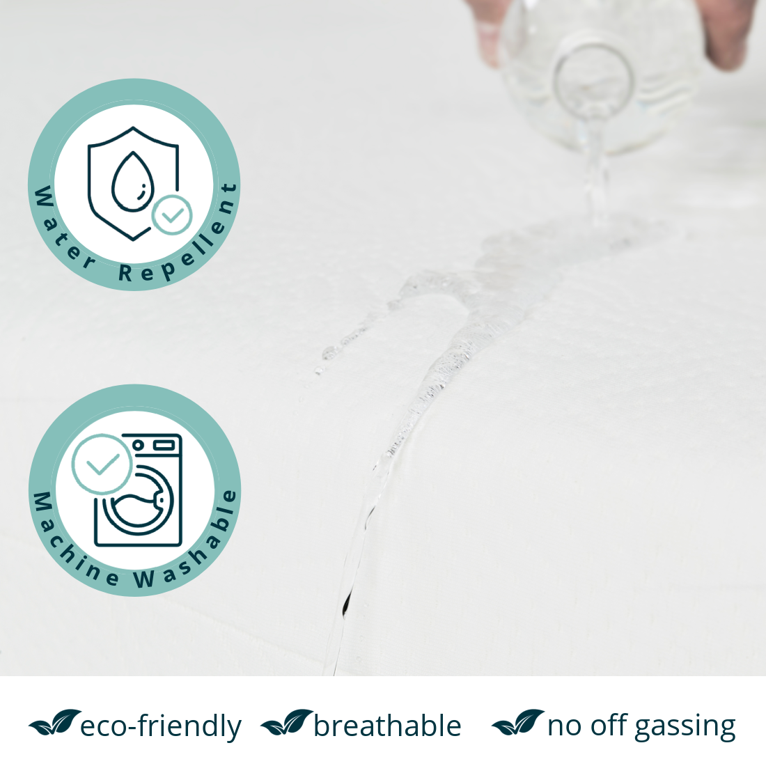 Our eco-friendly water repellent cover is breathable, antibacterial, and antimicrobial with no off-gassing.